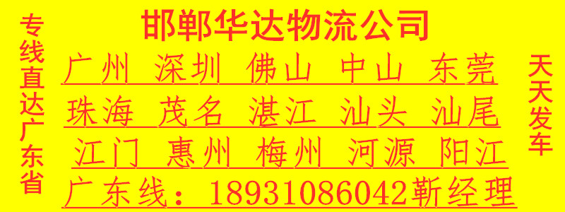 邯郸到茂名物流欢迎您的来电(0310-5510646//18931086042靳经理)邯郸到茂名物流专线,邯郸到茂名物流公司的详细介绍页面。